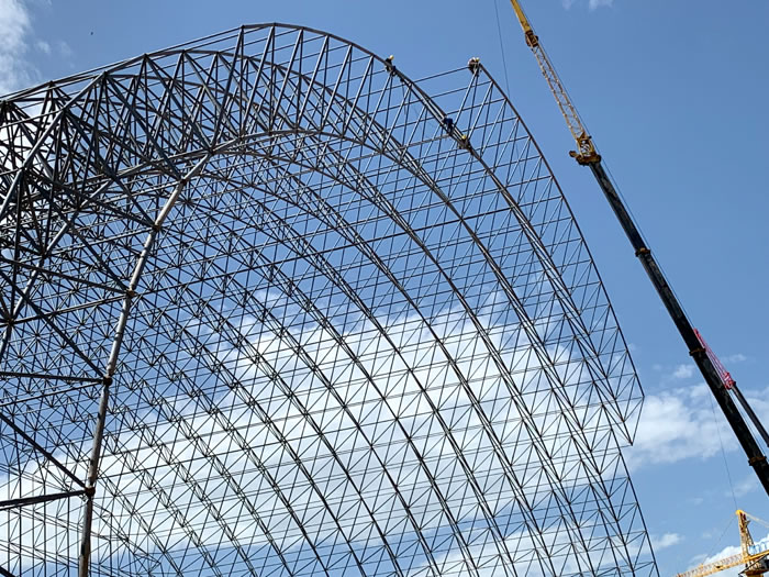 (2)网架加工前应对现场尺寸进行复测,确认无误后方可进行加工、安装;网架制作、运输、安装应遵守《空间网格结构技术规程》JGJ7-2010、《钢网架阿城螺栓球节点》JG/T 10-2009、《钢网架阿城螺栓球节点用高强度螺栓》 GB/T 16939-2016、《阿城钢结构阿城工程阿城施工规范》 GB50755-2012、《阿城钢结构阿城工程阿城施工质量验收标准》 GB50205-2020。